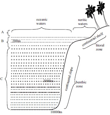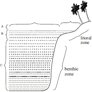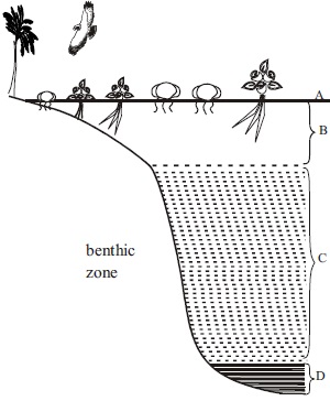 Write down the names of the various aquatic layers indicated by the alphabets A B C and D