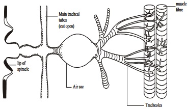 11.An example of an animal in which oxygen diffuses directly from the gaseous exchange structure into body cells is