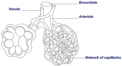 (iii)State two features of the alveoli that makes it well adapted for gaseous exchange
