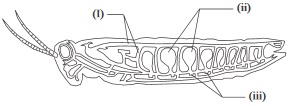 (A) Identify and label the air sac, spiracles, and tracheal in the diagram of insect’s respiratory system below which are indicated as (I), (ii) and (iii).