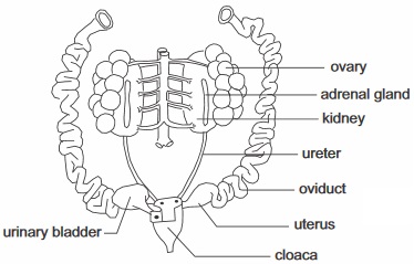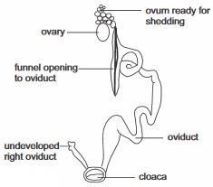9. In the reproduction structure of a lizard, the number of ovaries is two while in bird's (e.g. fowl) reproductive structure the number of ovaries is