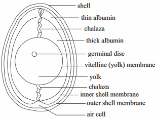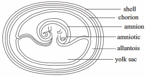 Diagrams of Eggs of reptile and that of a bird are shown in fig 9.97 A and B