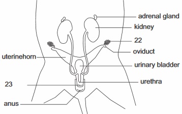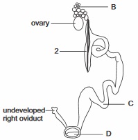 In the diagram of the female reproductive system of a hen (Fig 9.95), write down the functions of B and C as answers to questions 18 and 19
