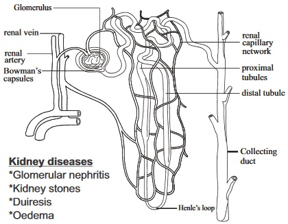 The Kidneys carries out its homeostatic throughitsexcretoryandosmoregulatory functions. In performing these functions, the kidneys maintains water balance and constant osmotic pressure in the blood and tissue fluid. Osmoreceptors at the hypothalamus in the brain detects changes in osmotic pressure as blood circulates, they send nerve impulses to the pituitary gland which releases antidiuretic hormone from its posterior part. When osmotic pressure is high. This hormone increases the permeability of the distal tubules and collecting dusts thus causing increased reabsorption of water by the tubules into the blood stream, in order to bring down the osmotic pressure. When normal osmotic pressure is attained it is again detected by osmoreceptors, the pituitary gland is stimulated by the nerve impulse from the receptors to stop releasing the antiduiretic hormone. The kidney also helps to maintain normal pH level of the blood by controlling excretion of H+ and Hco3-ions.