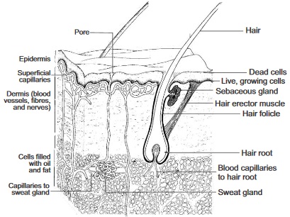 Diagram A and B shown in fig. 1.9 represents the reaction of some structure of the mammalian skin in different environmental conditions. Use them to answer the questions that follow.