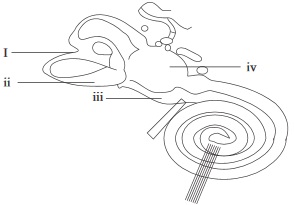 (c) Name the fluid that is found within parts of the structure labelled I – IV