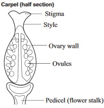 (c) Detach the sepals and petals of the longitudinal section of K and make a labelled drawing of 10cm to 12cm long to illustrate the features of the remaining parts of specimen K